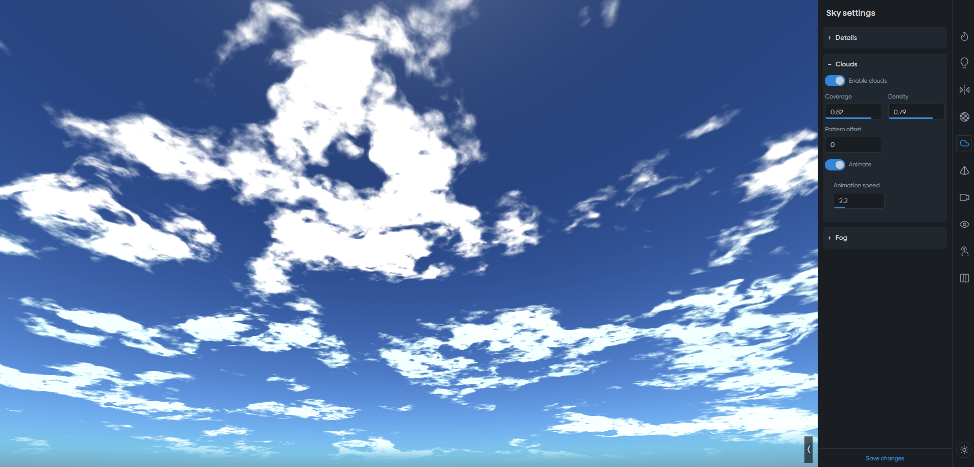 Enables cloud movement. When active, clouds will drift across the sky, simulating natural motion.